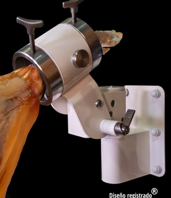 Jamonero de diseño para pared con movimientos 360º ,izquierda-derecha, arriba-abajo una manera distinta de cortar el jamon que hace que quede su mesa o encimera siempre libre de jamoneros